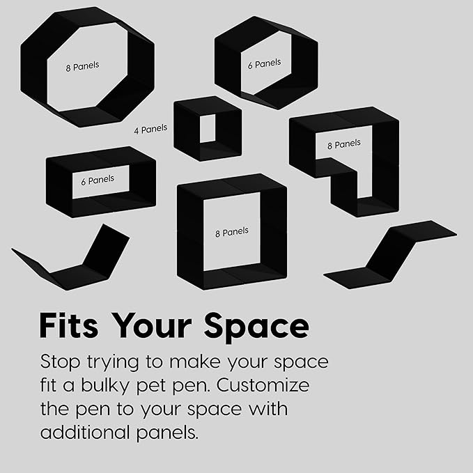 • EASY ASSEMBLY: Built with convenience in mind, the pet playpen can be put together by snapping the panels into place. It comes with 8 panels that each feature rubber feet to protect flooring and keep the pet pen in place.