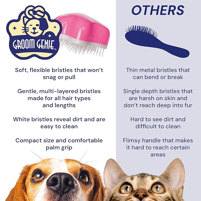 • Each penetrating stroke of the Groom Genie helps to evenly pull natural oils through hair and fur for healthy skin and coat.