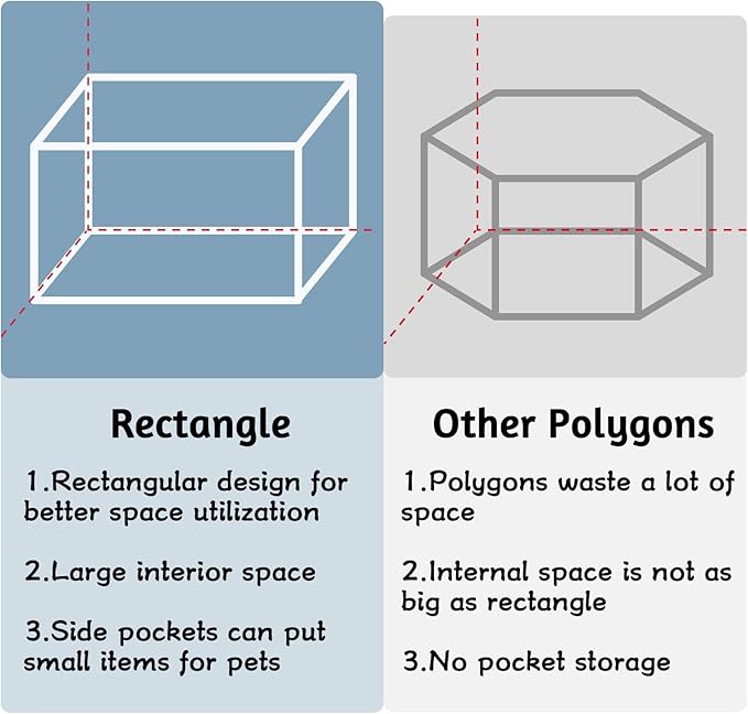 • [High Space Utilization]Our collapsible pet tents leave behind the traditional round and polygonal design, but use rectangular design to make better use of space.Large indoor space, enough to put down the cat litter box or cat scratching post. Suitable for small to medium animal like puppy, cats, rabbits,bunny, but not suitable for naughty pets with excessive teething or destructive chewing behavior