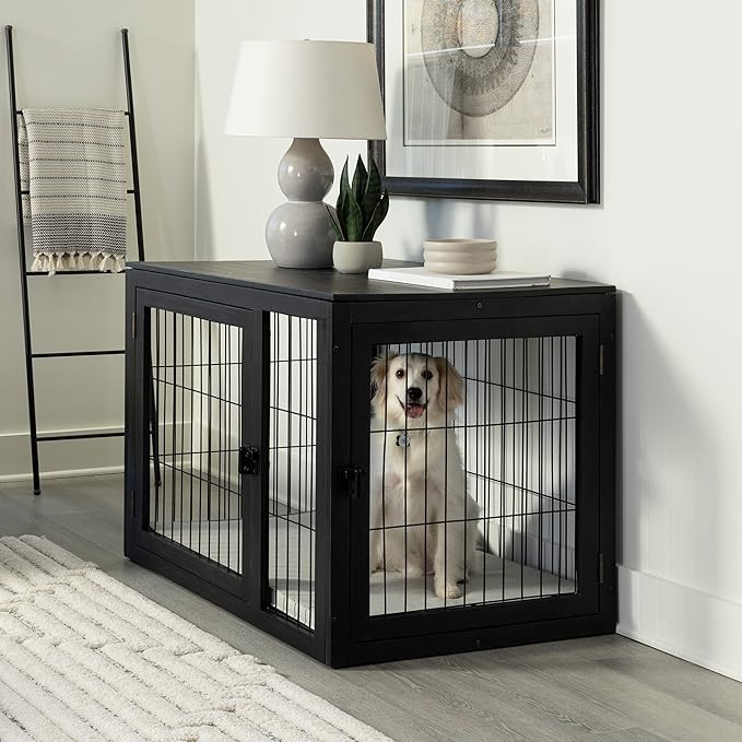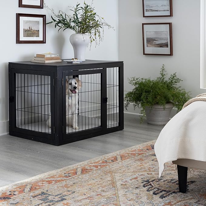 • MODERN DÉCOR - This dog kennel features a wide top, perfect for home decor, lamps, framed pictures, plants, and more while your pet rests comfortably underneath. The modern dog crate blends seamlessly in with your existing décor for a cohesive look.