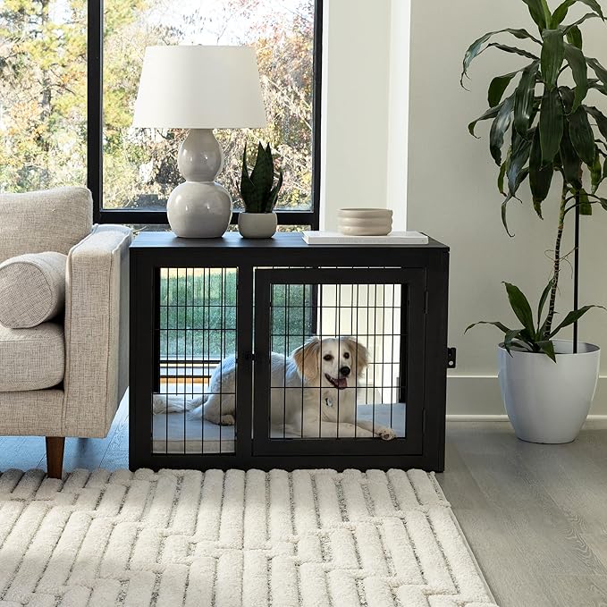 • MODERN DÉCOR - This dog kennel features a wide top, perfect for home decor, lamps, framed pictures, plants, and more while your pet rests comfortably underneath. The modern dog crate blends seamlessly in with your existing décor for a cohesive look.