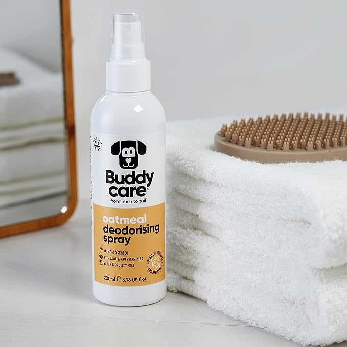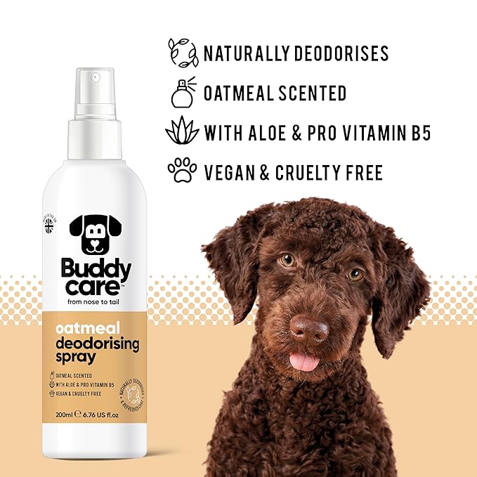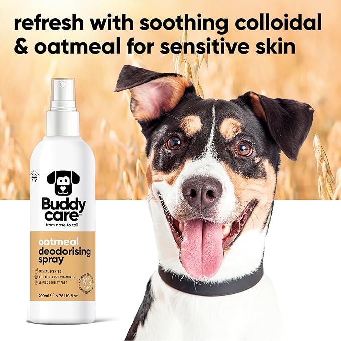 • OATMEAL DOGGY DEODORISING SPRAY - Freshen up Fido with this oatmeal fragranced deodorising spray that helps eliminate doggy odours. No more stinky pooch, just a soothing sweet scent wherever they go!
