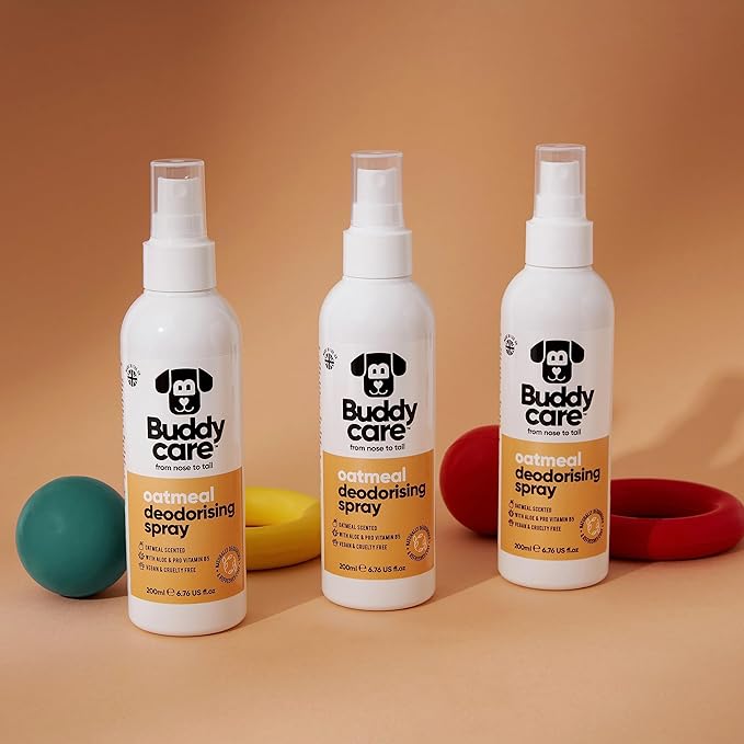 • WITH ALOE & PRO VITAMIN B5 - Buddycare Dog Deodorising Spray is made with a gentle PH balanced formula that's kind to skin, while conditioning agents like aloe vera and pro-vitamin B5 work to nourish and protect their coat.