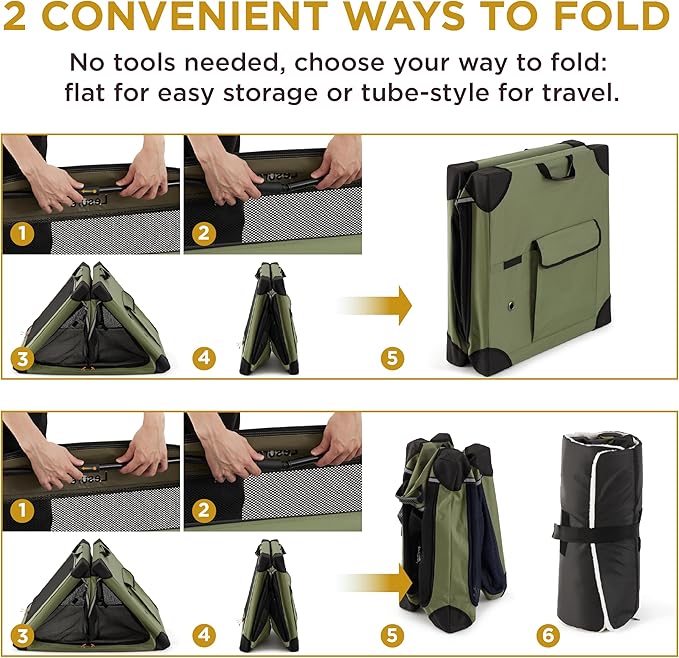 • Easy Assembly, Storage, & Maintenance: The convenient and simple design allows for quick assembly within 2 minutes. The crate can be folded into two different ways, catering to various indoor and outdoor settings. It features a water resistant design with waterproof fabric, making it easy to clean with just a damp cloth. The removable and machine washable mat simplifies care.