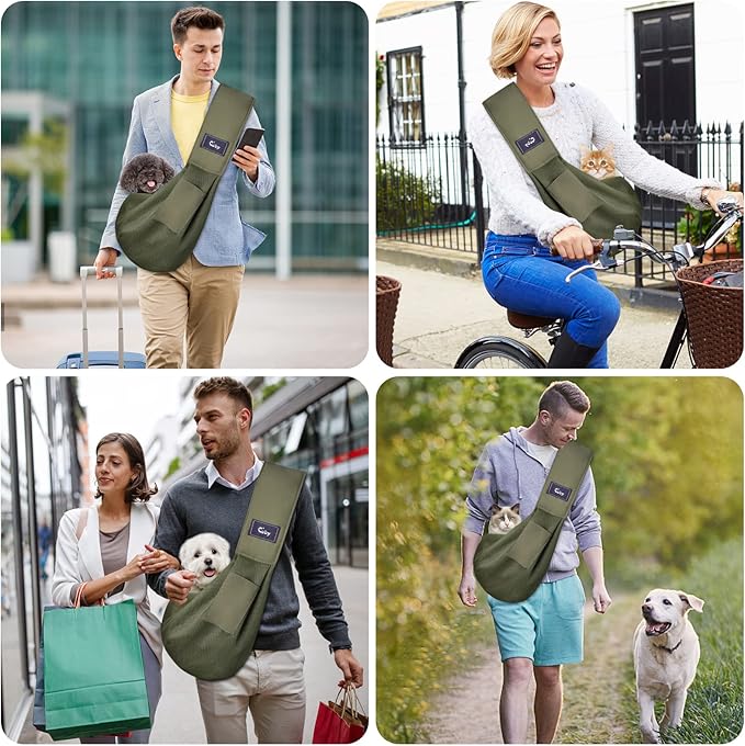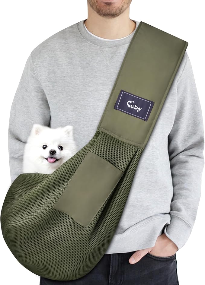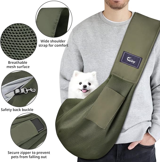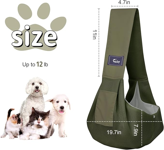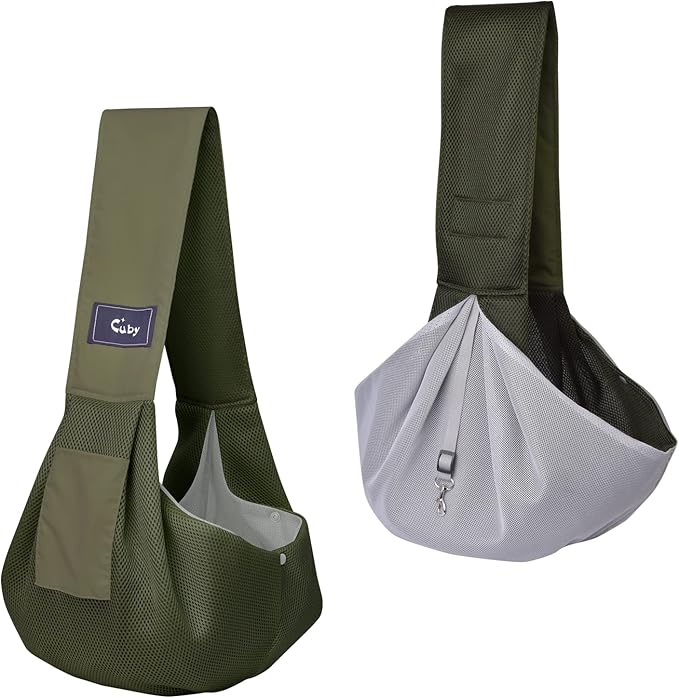 CUBY Dog and Cat Sling Carrier, Hands Free Reversible Pet Papoose Bag, Soft Pouch Adjustable, Suitable for Puppy Cats for Outdoor Travel (Green Mesh, one Size mesh)