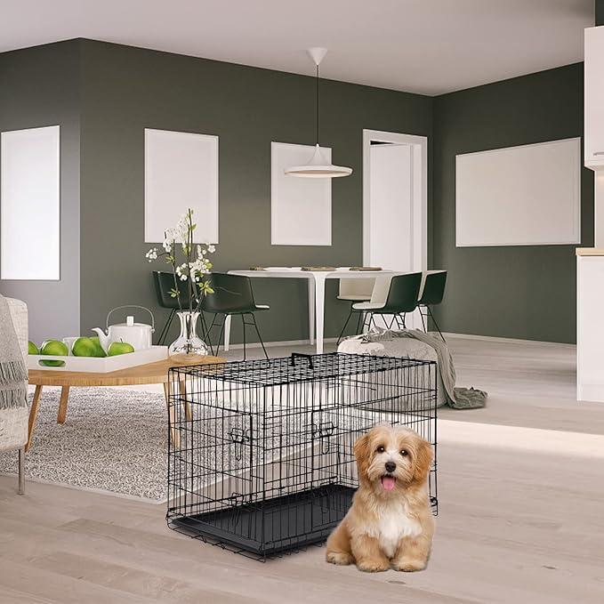 • 🐕【Dog Crate Made of Durable Materials】: the dog crate Made of high Tensile-Strength wire gauge.The dog cage ideal for training and transporting well-behaved pets. Pet crate epoxy coating finish extends the life of the crate and provides resistance against rust, corrosion, and fading, even in the most extreme climates. Dog crate dog cage pet crate.