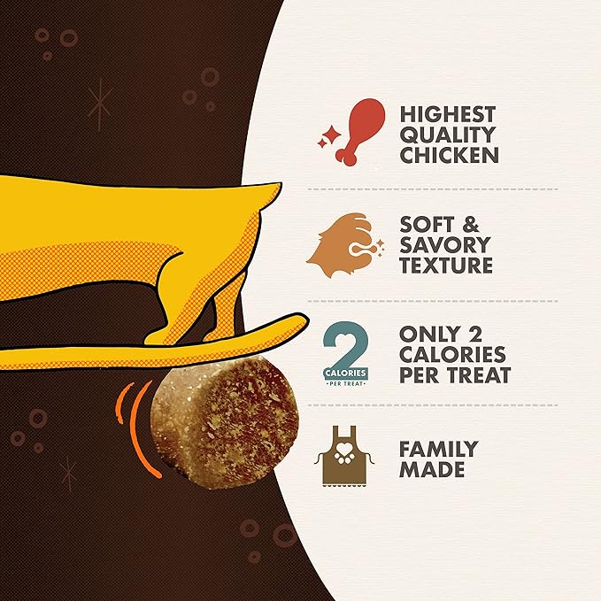 • SOFT DOG TREATS - These chicken recipe dog treats are moist, tender, and delicious. This 8 oz bag contains bite-sized dog treats.