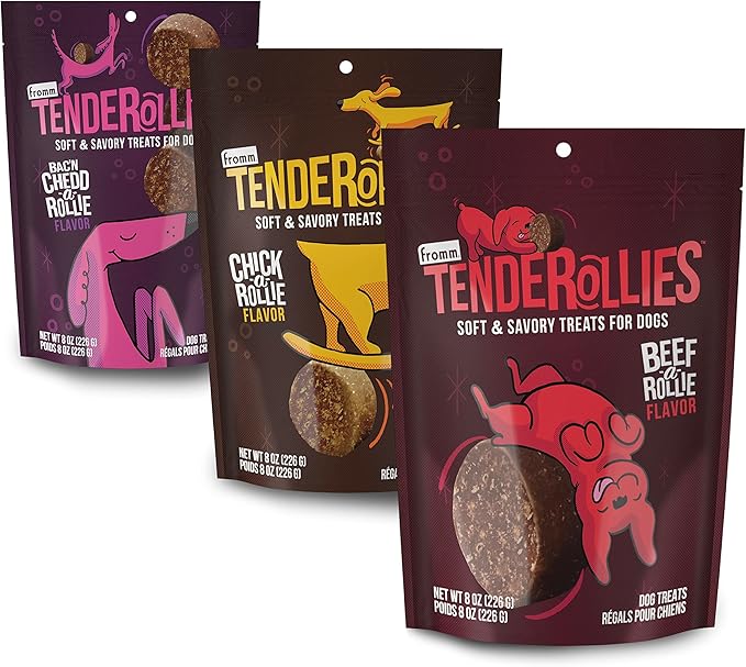 Fromm Tenderollies Dog Treat Variety Pack - Premium Soft & Savory Dog Treat Sample Pack (Bacon, Beef, Chicken) - Pack of (3) 8 oz Bags