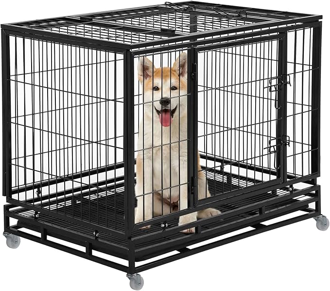 • ▲【STURDY AND DURABLE】Our dog kennel made from rust and corrosion-resistant steel,strong and durable, hard to be damaged,nontoxic finished surface keep your dog health and render excellent anti-rust ability.our dog cage is suitable for most medium and large dogs,two locks with the safety buckles to prevent the dogs from opening the door and escaping.dog cage dog kennel dog crate