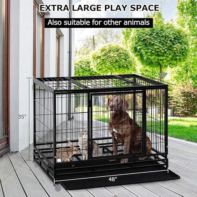 FDW Dog Crate Dog Cage Dog Kennel for Large Dogs Heavy Duty 48 Inches Pet Playpen for Training Indoor Outdoor with Plastic Tray Double Doors & Locks Design