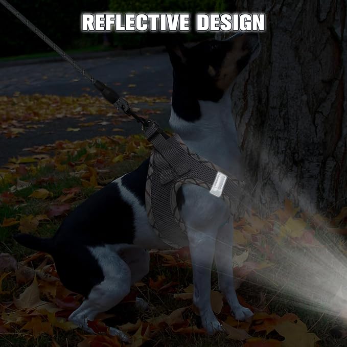 • Professional design: No pull and no choke.The puppy dog harness has a raised design at the front of the chest and is recessed at the bottom edge for a more comfortable fit. With reflective strips on the pet harness and leash, you can take your puppies out at night without worrying about not being able to find them, making them safer in the dark.