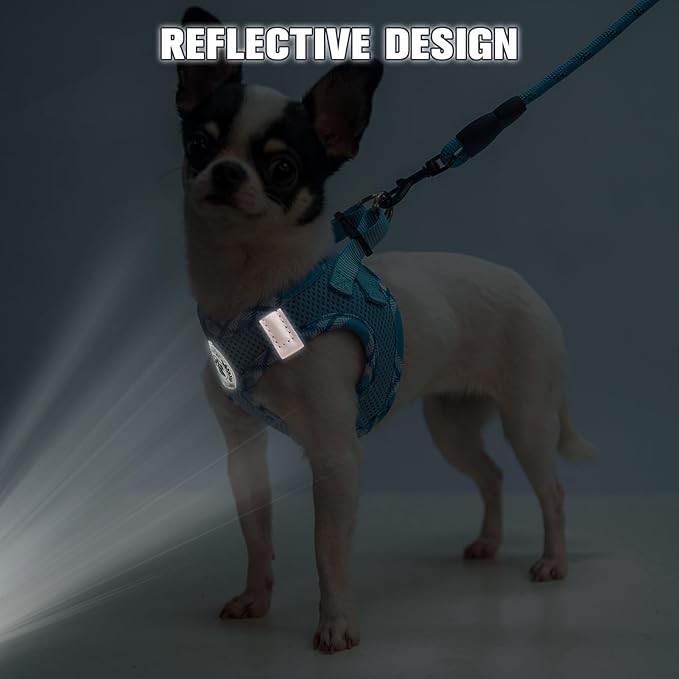 • Professional design: No pull and no choke.The puppy dog harness has a raised design at the front of the chest and is recessed at the bottom edge for a more comfortable fit. With reflective strips on the pet harness and leash, you can take your puppies out at night without worrying about not being able to find them, making them safer in the dark.