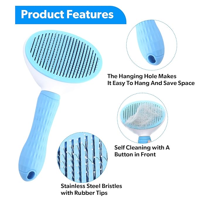 Pet Grooming Self Cleaning Slicker Brush for Cats and Dogs, Cats Brush for Shedding Hair, Removes Loose Hair & Tangles, Skin Friendly & Promote Circulation-Blue