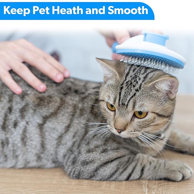 • 【SKIN-FRIENDLY MASSAGE NEEDLES】A lot pieces of stainless steel pins with protection points. This brush is ideal for pet SPA. Great for massaging while detangling hair. Does not hurt pet sensitive skin. Regular brushing and massaging can improve blood circulation to promote a healthy and shiny coat of your cat and dog. It can also reduce seasonal dog/cat shedding.
