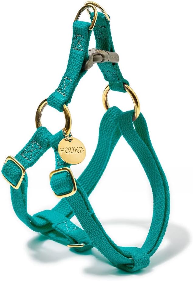 Found My Animal - Teal Cotton Cat & Dog Harness (Small) - Hand Dyed & Crafted Dog Harness - Adjustable, Pet Harness with Solid Brass Rings & Buckle - Dog Training Harness - Made in USA