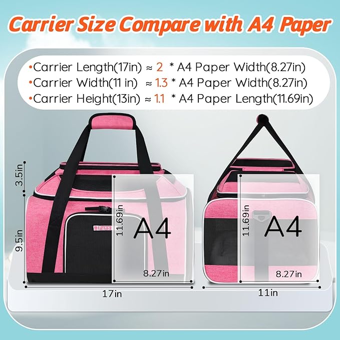 Petskd Top-Expandable Pet Carrier 17x11x9.5 Inches Alaska Airline Approved, Soft-Sided Carrier for Small Cats and Dogs with Locking Safety Zippers and Anti-Scratch Mesh(Pink)