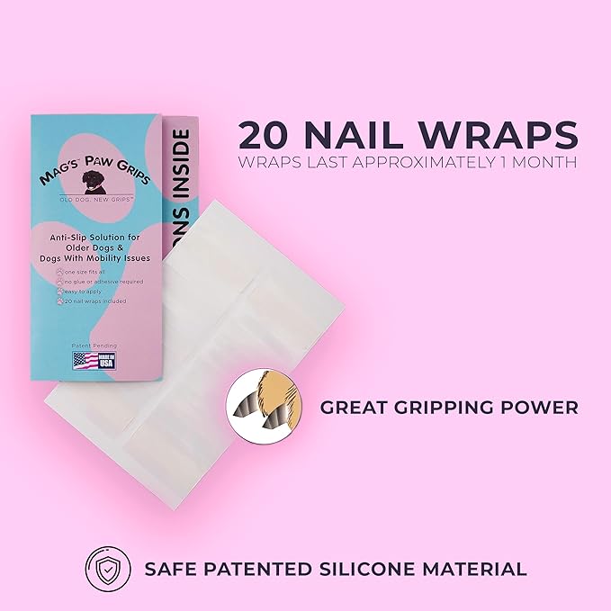 Mag's Paw Grips - Toe Grips for Senior Dogs - Anti-Slip Traction on Hardwood Floors - Nail Wraps for Dogs Under 100lbs
