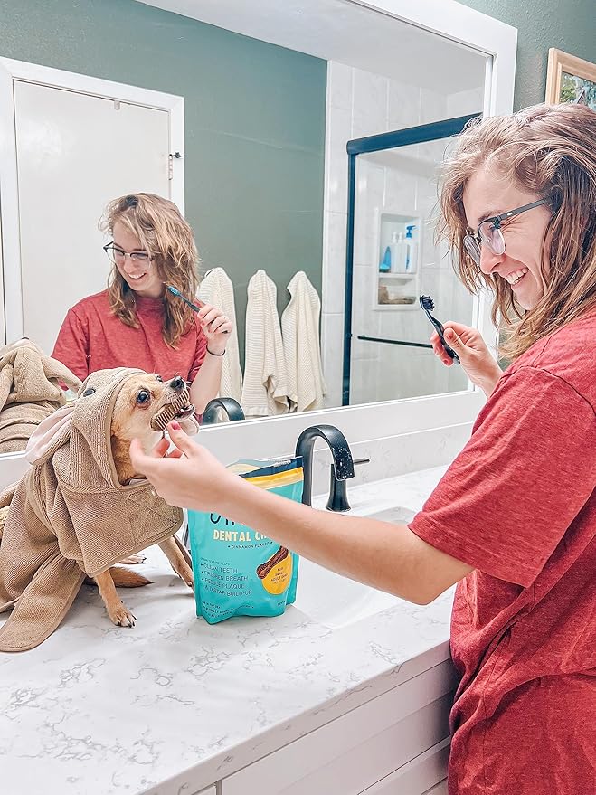 Jiminy's Dental Chews for Dogs, Cinnamon Flavor, Scientifically Proven to Improve Oral Health, Dental Bones Clean Teeth, Fight Bad Breath, and Removes Plaque and Tartar, Small, 20ct (Pack of 1)