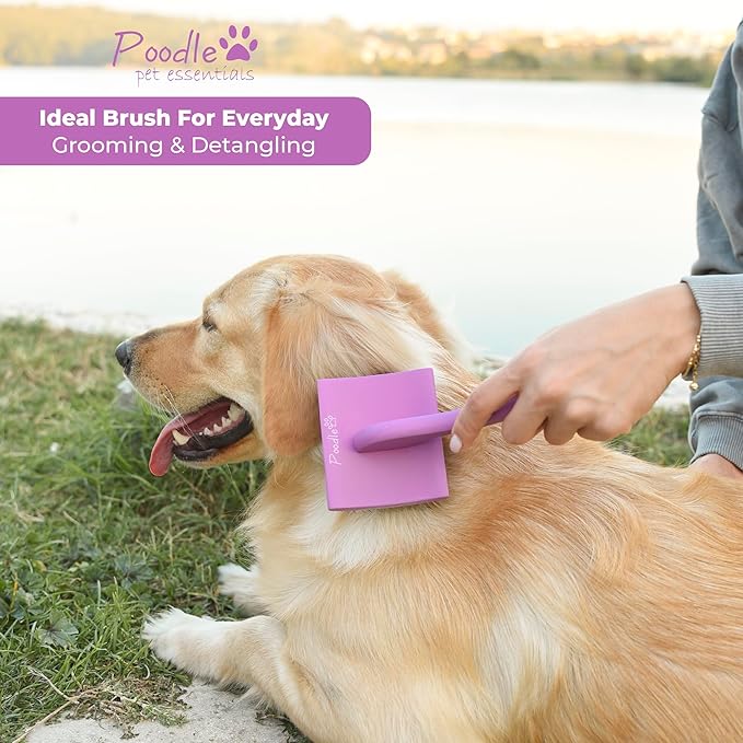 POODLIE Slicker Brush for Dogs - Detangling Dog Brushes for Grooming with Soft Bristles & Long Pins - Professional Cat Deshedding Tool to Removes Tangles & Dirt (Large)