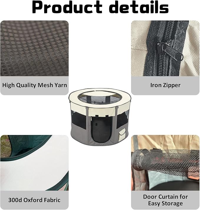 • [Multi-scene Use]The pop up playpen keeps your pets safely with you while at the park, beach, and inside or outside your home. At the same time it can also be used as a indoor pet delivery room for female cats, the size of this is enough for her to give birth in it, we recommend putting pet urine pads on the bottom before giving birth