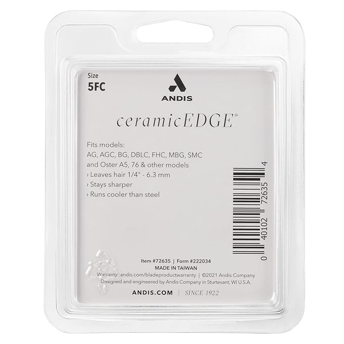 Andis CeramicEdge Carbon-Infused Steel Pet Clipper Blade, Size-5FC, 1/4-Inch Cut Length (72635),Silver