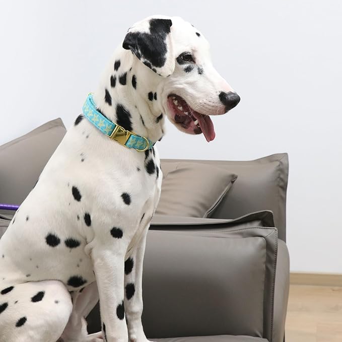 Lionet Paws Boy Dog Collar, Comfortable Adjustable Cute Yellow Starfish Collar with Metal Buckle for Male Dogs Gift, XLarge, Neck 16-26 inches