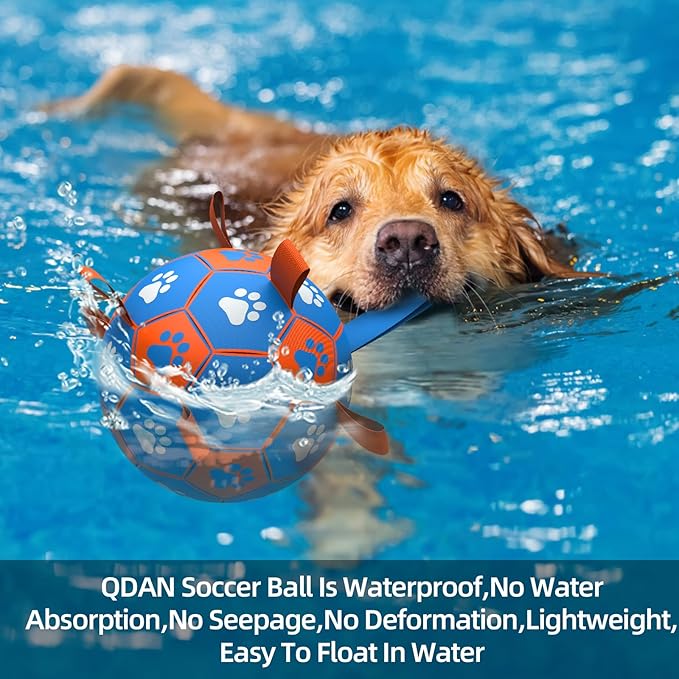 • ⚽ ⚽ QDAN Dog Soccer Ball Best Gift For Your Dog - Send your dog a birthday gift.House and Outdoor Dog Toys can be played in the living room,pool,lake and beach,because it is also Water Toys Ball,no water absorption,no seepage,no deformation,lightweight,easy to float in water.Dog Soccer Ball with Grab straps are great for dog catching balls and increasing your dog's interest in playing.