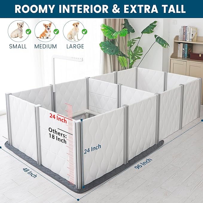 Senneny Whelping Box for Dogs - 24” Extra Tall - Dog Whelping Pen with Whelping Pad and Lamp Holder - Dog Whelping Supplies for Large Medium Small Dogs Puppies (2-Rooms(96" L x 48" W x 24" H))
