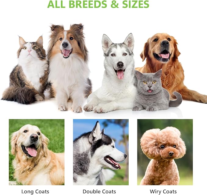 • Effective Deshedding Tool:Our pet undercoat rake tool is specifically engineered to tackle excessive shedding. With its innovative design, it effectively reduces shedding by an impressive 95%, keeping your home and furniture cleaner while ensuring your pet's coat remains healthy and well-maintained