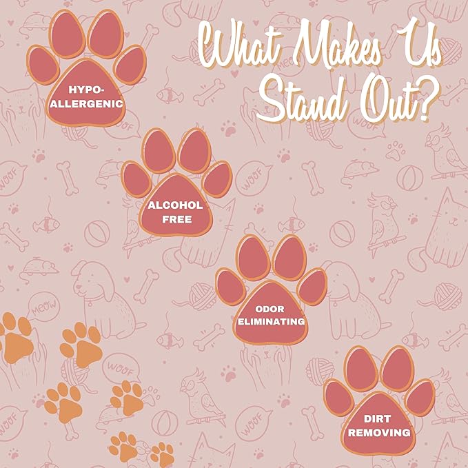 • PET WIPES: Our wipes come in various gentle scents and are hypo-allergenic, alcohol free, and deodorizing.
