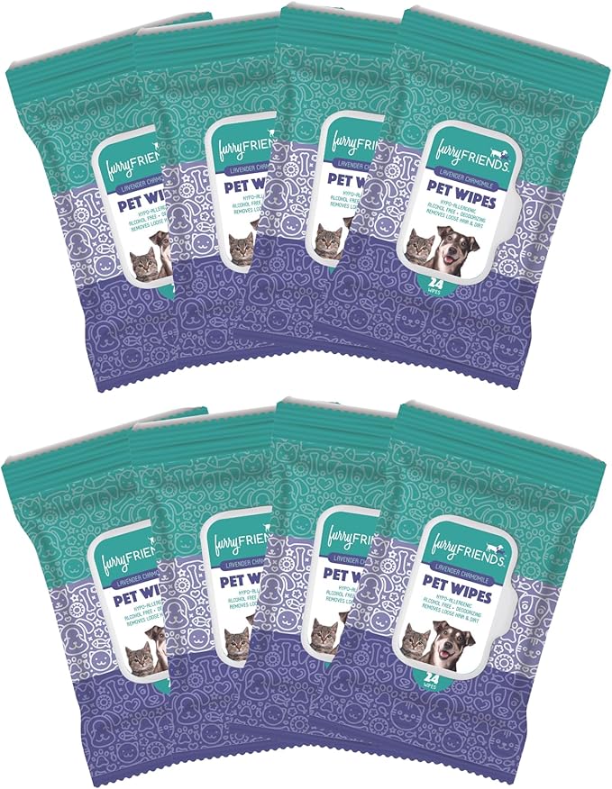 FurryFriends Pet Wipes | Lavender Chamomile Scented | Hypo-allergenic | Alcohol Free| Deodorizing | Removes Loose Hair & Dirt | Incredibly Clean | 8 Pack