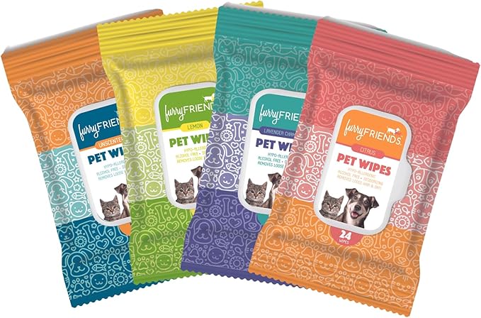 FurryFriends Pet Wipes | Variety Pack | Hypo-allergenic | Alcohol Free| Deodorizing | Removes Loose Hair & Dirt | Incredibly Clean | 4 Pack