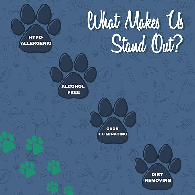 • PET WIPES: Our wipes come in various gentle scents and are hypo-allergenic, alcohol free, and deodorizing.