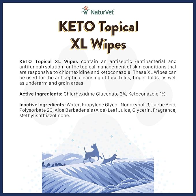 NaturVet Keto Topical XL Wipes for Dogs, Cats & Horses 60 Count