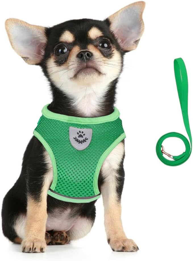 FEimaX Dog Harness and Leash Set for Walking, Soft Mesh Adjustable Easy Control Lightweight Cat Vest Harnesses with Reflective Strips, Escape Proof Small Dogs Cats Vests