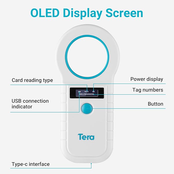 • 【OLED Display Screen】Tera Animal Tag Scanner uses high brightness OLED display ensures optimal visibility, allowing you to efficiently track and identify animals without any hindrance or inconvenience.
