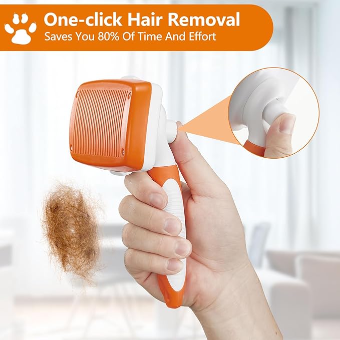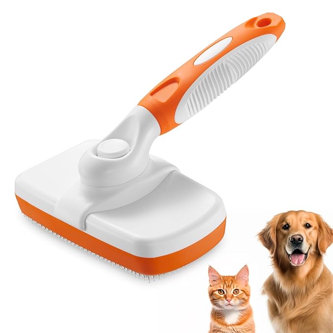 Self-Cleaning Slicker Brush for Dogs and Cats - Removes Loose Hair and Pet Fur (Large, Orange)