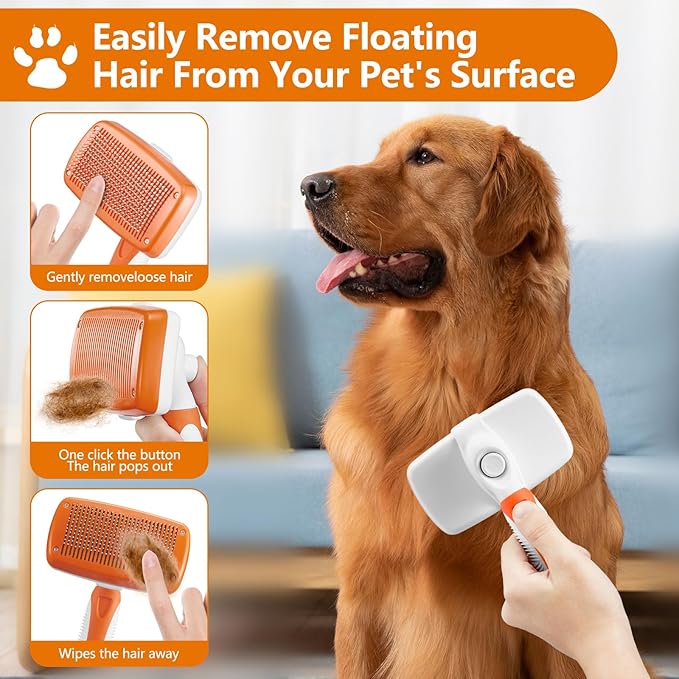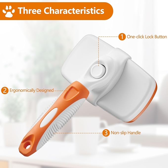 • 🐇One-touch Lock Button: Our pet brush features a convenient one-touch lock button that securely holds the bristles in place. This allows for easy cleaning and storage, ensuring the longevity of the brush and maintaining its effectiveness in removing shedding hair.