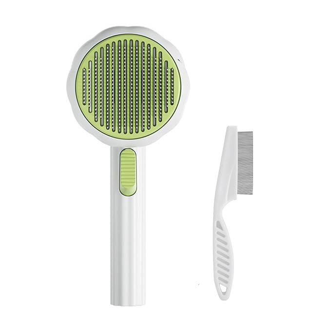 • Pet Grooming Kit: Includes 1x grooming brush, 1x 2 in1 hair comb. Cost-effective combo for safe, comfortable, and durable grooming experience. Suitable for Small, Medium, and Large short/long-haired pets. Enjoy the fun and relaxing process of keeping your dog or cat clean and tidy. additional cat hair combs that help detangle and remove mats dander, and trapped dirt , leaving your pet's fur smooth and knot-free.
