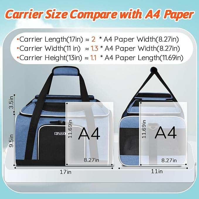 Petskd Top-Expandable Pet Carrier 17x11x9.5 Inches Alaska Airline Approved, Soft-Sided Carrier for Small Cats and Dogs with Locking Safety Zippers and Anti-Scratch Mesh(Blue)
