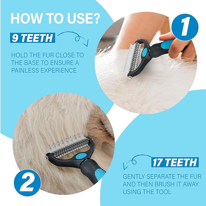 Pet Grooming Brush, Handheld Metal Blade Undercoat Dematting Rake, Double-Sided Extra Wide, Suitable for Long-Haired Dogs and Cats Comb, Focused on Removing Mats and Tangles (Blue)