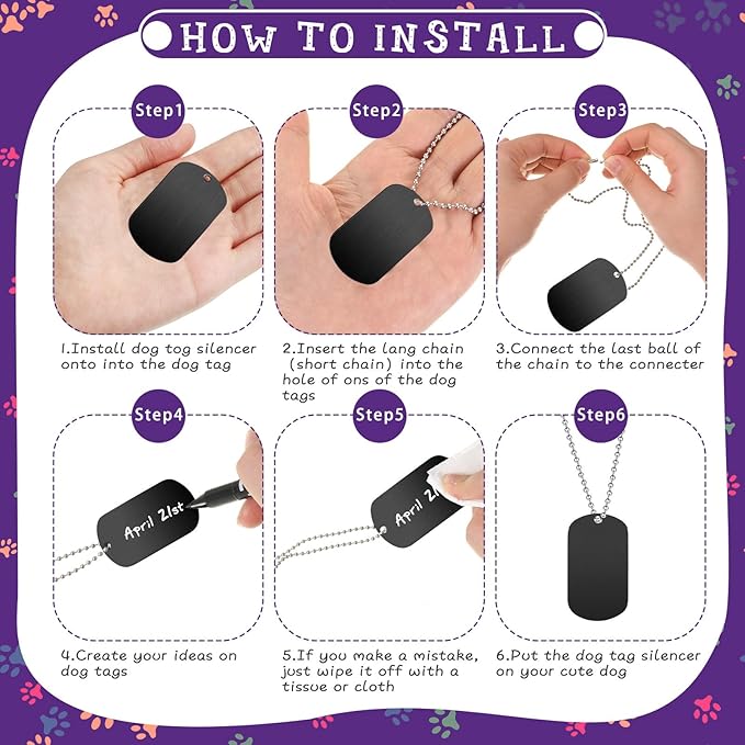 • Strong Material: dog tags for kids is made of aluminum material, with strong structure and smooth surface, reliable to use; Stainless steel chain is not easy to rust or break, can be stored for a long time; The equipped marker pen allows you to write something on the dog tag, and the writing is erasable