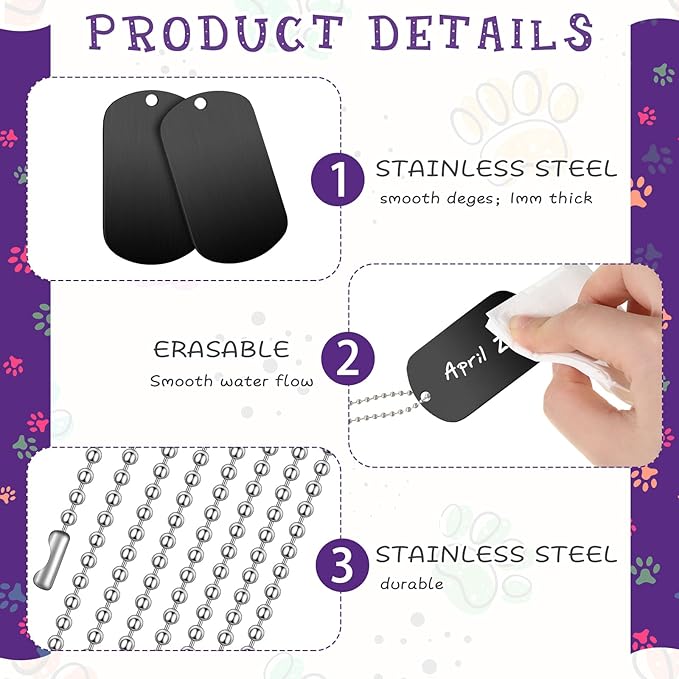 • Wide Range of Uses: dog tag chain necklace is suitable for children, and can be given to your son and daughter as a simple and meaningful birthday gift; It can also be applied as a pet tag, luggage tag, DIY craft accessories, classroom reward and more
