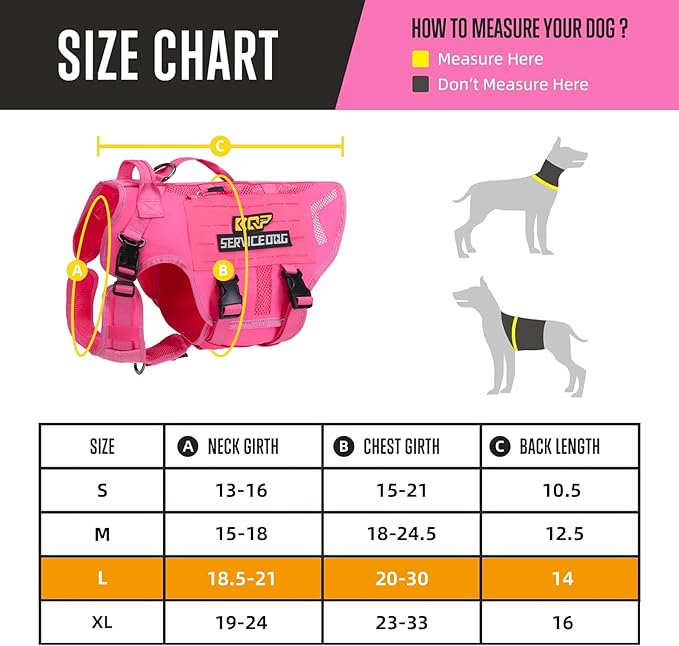 - [Size Chart]: To ensure the perfect fit for your loyal companion, refer to our comprehensive Size Chart. Choose the ideal size based on your dog's measurements for optimal comfort and functionality. We offer a range of sizes, including Size S: 13"- 16"(Neck); 15"- 21"(Chest); 10.5"(Back) M: 15"- 18"(Neck); 18"- 24.5"(Chest); 12.5"(Back) L: 18.5"-21"(Neck); 20"- 30"(Chest); 14"(Back) XL: 19"- 24"(Neck); 23"- 33"(Chest); 16"(Back) .