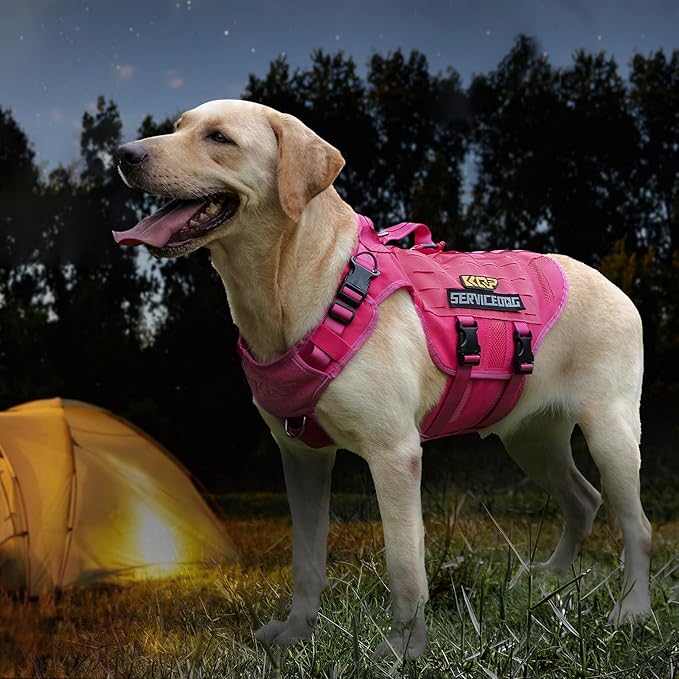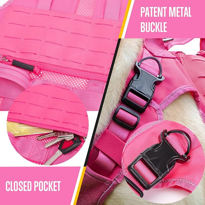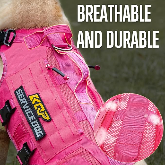 No Pull Dog Harness -Tactical Dog Harness - Breathable mesh, Pet Walking Hiking Training Vest- Dog Harness for Dogs, Service Dog, Large, Pink