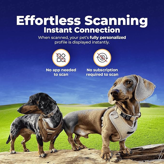 • 【No App Required】Our HeyBuddy pet tag can be scanned without the need for any additional app. Anyone who finds your lost pet can easily scan the tag using their smartphone's built-in QR code scanner, providing them with essential information to contact you and reunite you with your furry friend.