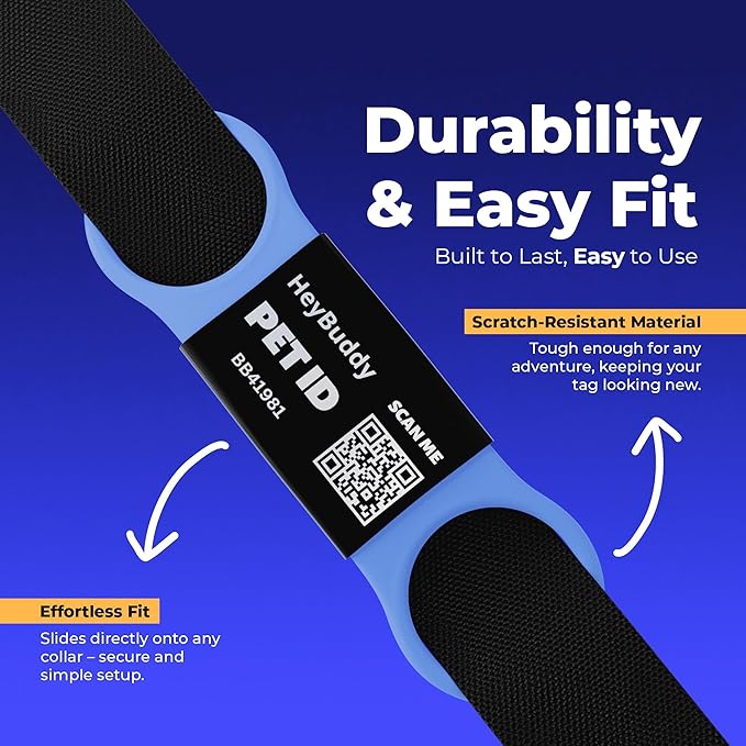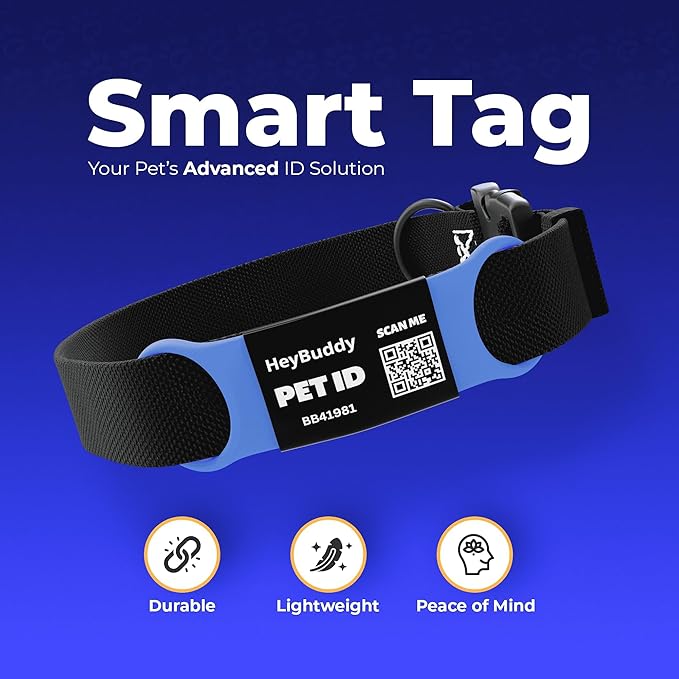 HeyBuddy® Slide Series - QR Code Smart Pet Tags for Dogs & Cats, Personalized Pet Tag Stores Multiple Information, Includes Passive Location Tracking, Real-Time Notification & Community Alerts