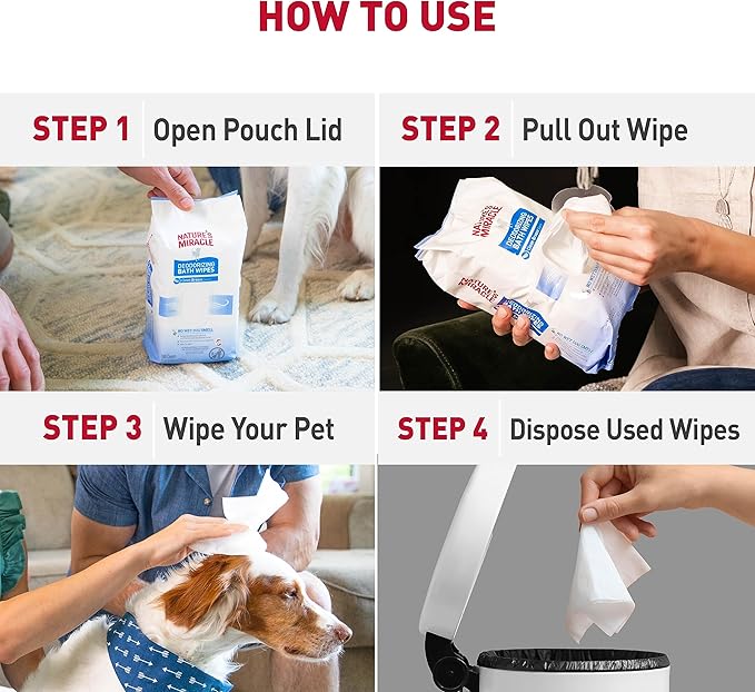 • FOR ODOR ELIMINATION: Wipe pet as needed; works great for pet spot & paw cleaning