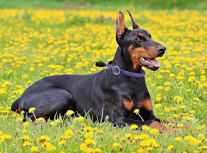 Braided Rope Collar, Pro Training Dog Collar, No Pull Round Martingale Collar, Slip Collar with Slidable Stop Ring - Ideal for Large Dogs (XL(1/2") - 26" Long, Purple)