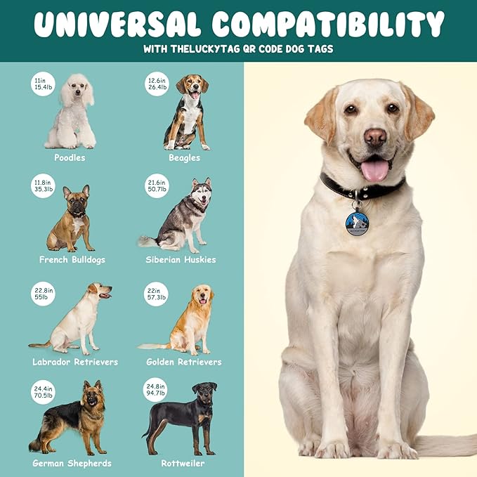 • 【DIFFERENT BASE DESIGNS】Theluckytag dog tags come in many different base designs (Space, balls, wild animals, countries and so on) that can be personalized to match your pooch. They come in one size with 2 included metal ring for easy attachment to any collar